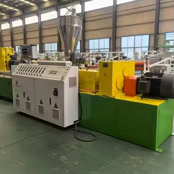 這是整個生產(chǎn)流程的核心環(huán)節(jié)。混合好的粉料通過真空上料機(jī)被吸入錐形雙螺桿擠出機(jī)的料斗中。